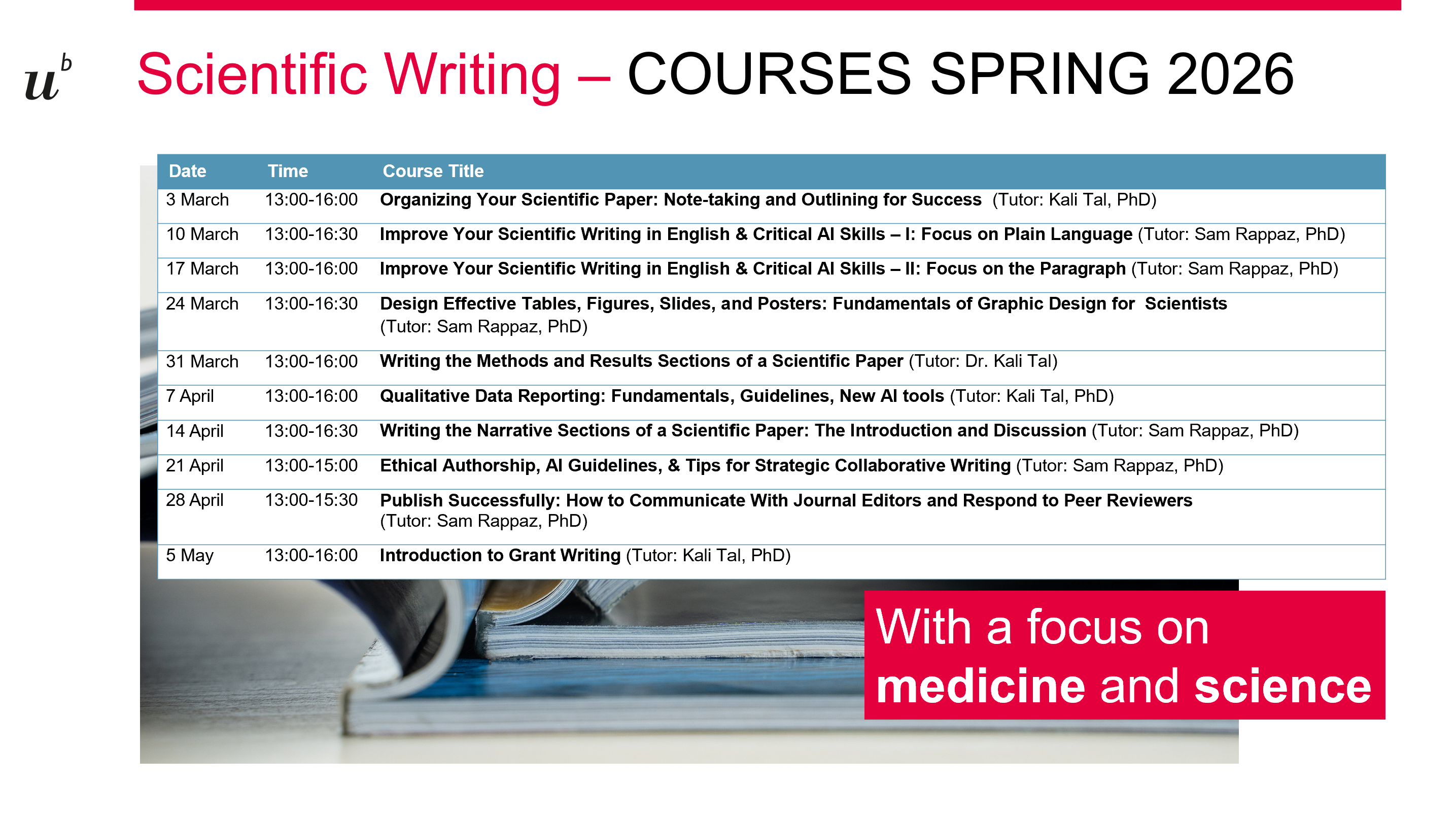 SPRING 2026 SCIENTIFIC WRITING COURSES